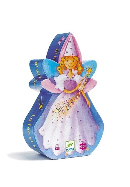Het formaat van de puzzel is 42×30 cm. De puzzel bestaat uit 36 puzzelstukjes van 7 cm. De kinderpuzzel is verpakt in een stevige silhouet opbergdoos in de vorm van een fee.