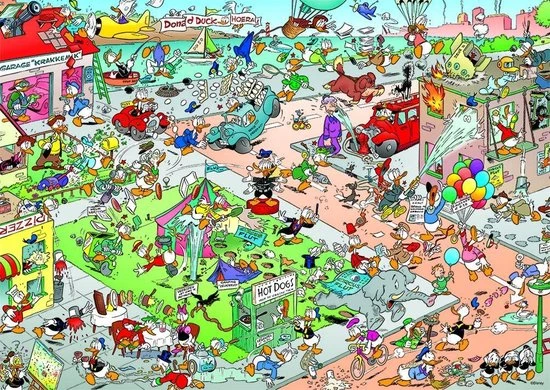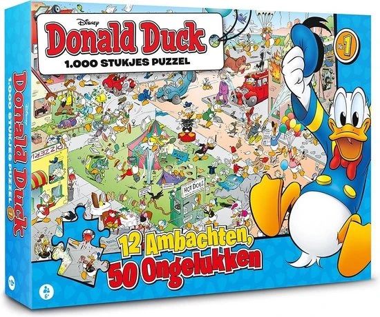 Sinds de start van het weekblad ?Donald Duck? in oktober 1952, is dit blad niet meer weg te denken uit de Nederlandse woonkamer. Al ruim 65 jaar wordt jong en oud vermaakt met de spannende avonturen van de onfortuinlijke eend. Deze puzzelplaat is eerder als megaposter verschenen in het vrolijke weekblad. Doordat deze puzzel is opgebouwd uit 1.000 stukjes is hij geschikt voor puzzelaars van 6 tot 106!