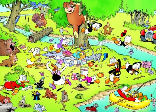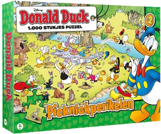 Sinds de start van het weekblad ?Donald Duck? in oktober 1952, is dit blad niet meer weg te denken uit de Nederlandse woonkamer. Al ruim 65 jaar wordt jong en oud vermaakt met de spannende avonturen van de onfortuinlijke eend. Deze puzzelplaat is eerder als megaposter verschenen in het vrolijke weekblad. Doordat deze puzzel is opgebouwd uit 1.000 stukjes is hij geschikt voor puzzelaars van 6 tot 106!
