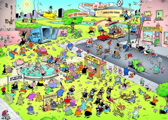Sinds de start van het weekblad ?Donald Duck? in oktober 1952, is dit blad niet meer weg te denken uit de Nederlandse woonkamer. Al ruim 65 jaar wordt jong en oud vermaakt met de spannende avonturen van de onfortuinlijke eend. Deze puzzelplaat is eerder als megaposter verschenen in het vrolijke weekblad. Doordat deze puzzel is opgebouwd uit 1.000 stukjes is hij geschikt voor puzzelaars van 6 tot 106!