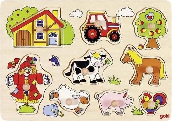 Goki houten noppenpuzzel boerderij van het merk Goki.