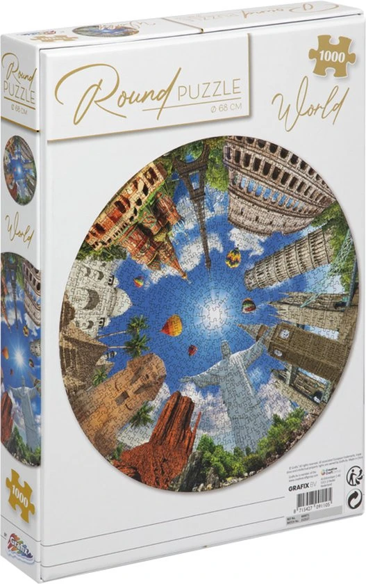 Anders dan de traditionele rechthoekige puzzel, is de ronde Wereld puzzel van Grafix. De puzzelstukjes zijn erg goed gesneden waardoor de puzzelstukjes mooi in elkaar passen. Daarnaast zijn de puzzelstukjes ”Premium Pigment” bedrukt en glad oppervlak, waardoor de puzzel een prachtig kleureffect heeft.