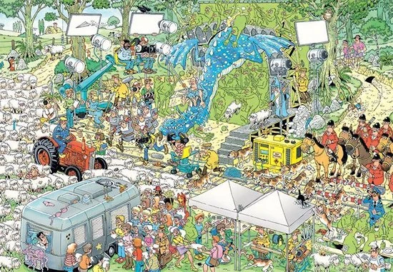 Chaos op de Filmset! Deze Jan van Haasteren puzzel bestaat uit 2000 stukjes.