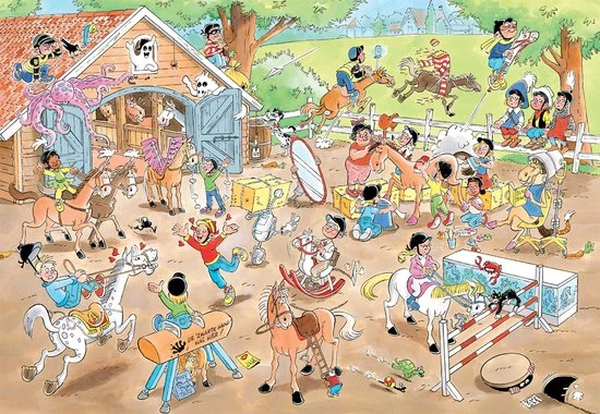 Het is een drukke boel met de vrienden van Jan van Haasteren Junior op de manage. De trouwe ros van Sinterklaas Junior is in ieder geval in extase om zijn baasje weer te zien! Maar wat voor fratsen halen de andere vrienden uit? Deze humoristische puzzel van 360 stukjes is geschikt voor kinderen vanaf 7 jaar.