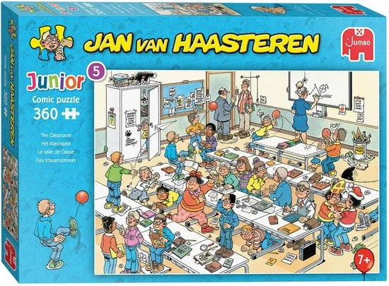 Letten de vrienden van Jan van Haasteren op tijdens de les? Ondanks het feit dat de lerares ogen in haar achterhoofd heeft, kunnen sommigen van hen het niet laten om ondeugend te zijn! Deze humoristische legpuzzel van 360 stukjes is geschikt voor kinderen vanaf 7 jaar.