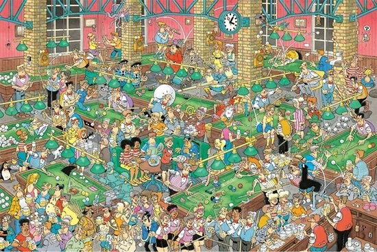 Een hilarische Jan van Haasteren puzzel met de meest chaotische poolbar die je ooit hebt gezien. Niks is gek genoeg voor de Jan van Haasteren puzzels en ook deze puzzel met 1500 stukjes bevat de meest unieke details. Elk hoekje heeft haar eigen detail en maakt deze puzzels super leuk om in elkaar te leggen. Voor een goed potje poolen zit je verkeerd, maar om lachend een puzzel in elkaar te leggen zit je precies goed.