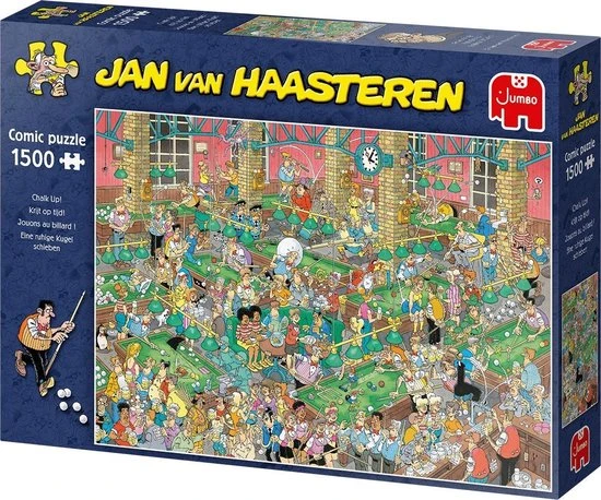Jan van Haasteren puzzels zijn puzzels met veel kleur en details. Jan van Haasteren tekent al decennia lang humoristische platen die je steeds weer verrassen en laten lachen. De echte fans kennen de specifieke kenmerken van Jan van Haasteren en zoeken in elke puzzel direct naar de haaienvin, Sinterklaas, de handjes, het kunstgebit en Jan?s zelfportret. Jumbo heeft tientallen Jan van Haasteren puzzels in de collectie van 54 tot maar liefst 5.000 puzzelstukjes.