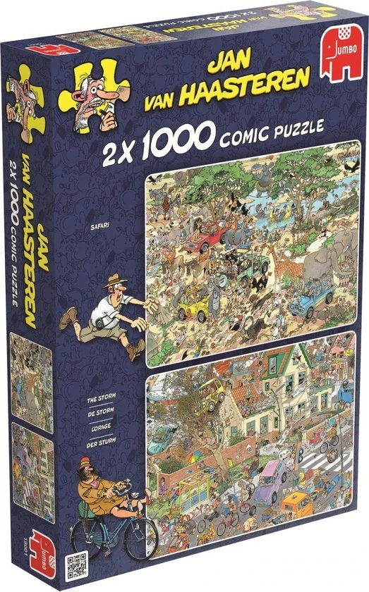 Twee humoristische puzzels van Jan van Haasteren in een doos. De humoristische Safari & Storm van elk 1000 stukjes.