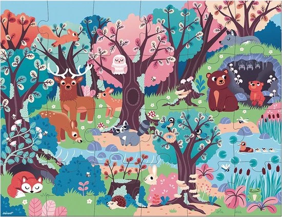 Magische 24-delige puzzel met het bos als thema. Doe het magische lampje branden en ga op ontdekking naar nachtdieren! Dankzij de lamp wordt de puzzel tot leven gewekt en kan het kind verborgen afbeeldingen in de puzzel ontdekken. Een speelse 2-in-1 puzzel die de nieuwsgierigheid prikkelt.
