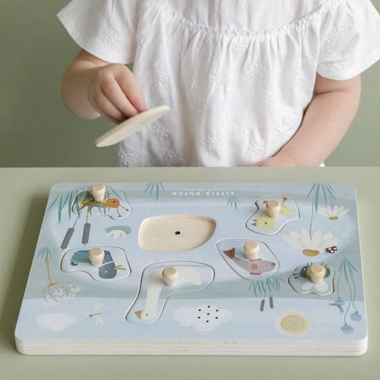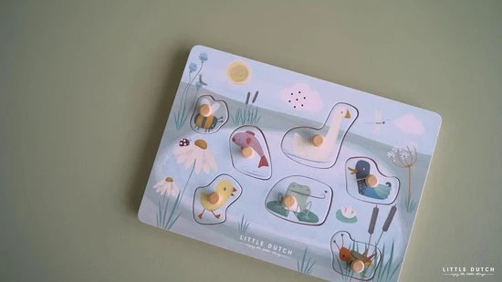 Maak kennis met Gans en zijn vriendjes. Herken hun vormen en unieke geluiden met deze leuke puzzel. Als je het diertje terugplaatst op het juiste plekje hoor je het plonsen, kwaken of zoemen. Ontworpen voor je kind om de levende wezentjes rond de vijver op het platteland te leren kennen.