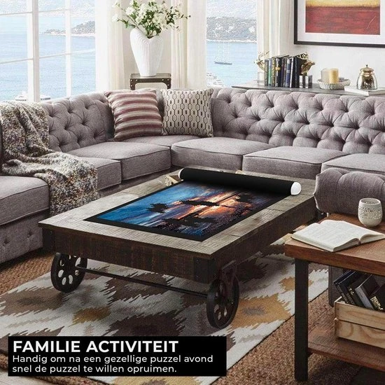 Wil je de puzzel meenemen naar familie, vrienden of je vakantiebestemming? Geen probleem! De lichte rol is gemakkelijk overal mee naartoe te nemen, zodat je overal verder kunt puzzelen!