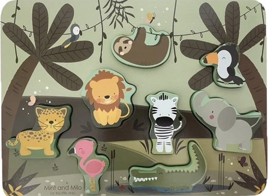 Houten dieren puzzel jungle – HOUTEN VORMENPUZZEL met dieren – Mint and Milo