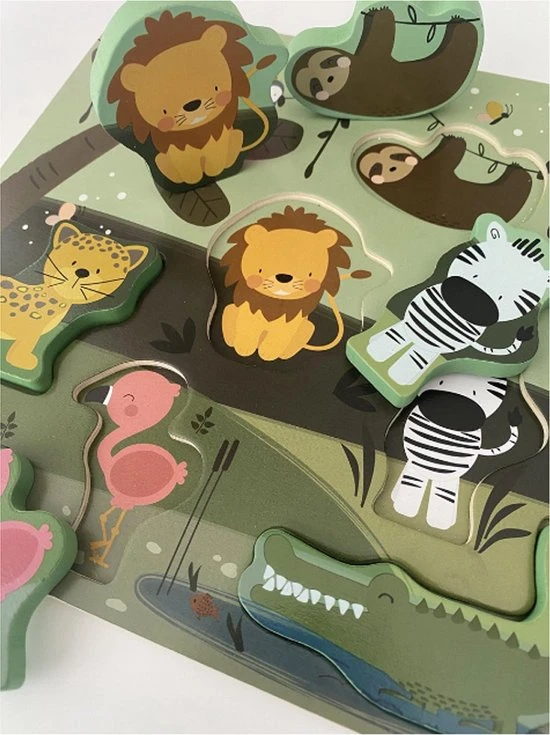 De inhoud bestaat uit een jungle puzzel met 8 chunky puzzel stukken.