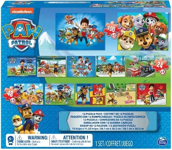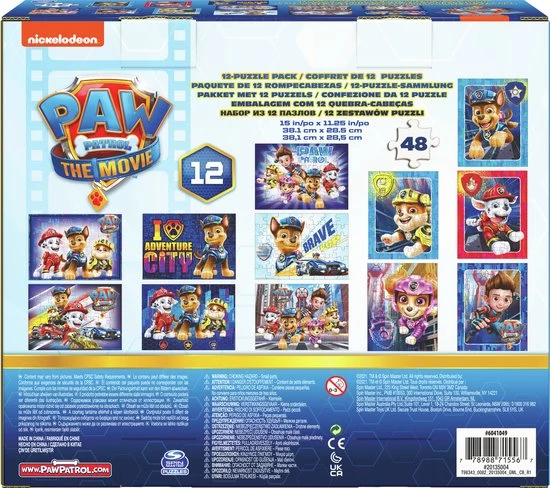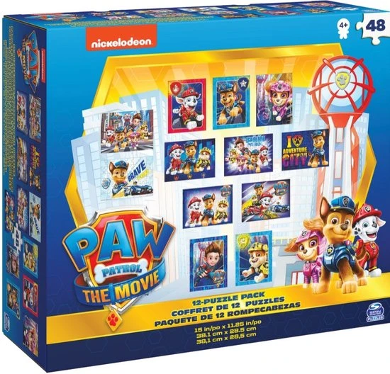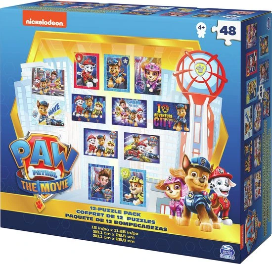 Met deze PAW Patrol cadeauset met 12 puzzels heb je veel meer dan een avond vol supervermakelijke en kleurrijke puzzels uit de nieuwe film PAW Patrol De Film. Je ontvangt 12 puzzels in 1 pakket. Met slechts 48 stukjes zijn deze legpuzzels geschikt voor alle kinderen vanaf 4 jaar. Het zal een spannende, maar haalbare uitdaging zijn die leuk is en helpt bij hun leerontwikkeling.