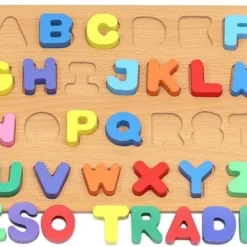 Iso Trade Alfabet Puzzel Voor Kinderen – Hout – 30x20CM – Houten Alfabet Puzzle – Klassiek Speelgoed Cadeautip