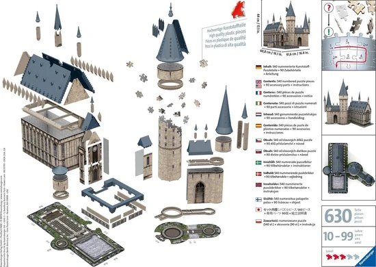 Het Harry Potter Zweinstein Kasteel is een 3D puzzel van Ravensburger met 540 stukjes.