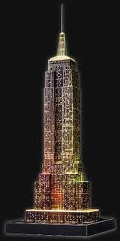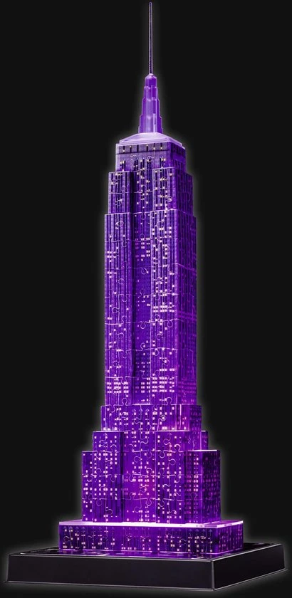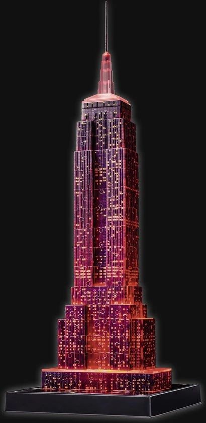Beleef iets unieks door de Ravensburger Empire State Building by night de hoogte in te laten groeien. De perfect passende kunststof puzzelstukjes zorgen voor een goede stabiliteit, zonder lijm. Een echt hoogtepunt is het gebouw in het donker, wanneer de toren van binnenuit schittert in afwisselende kleuren.
