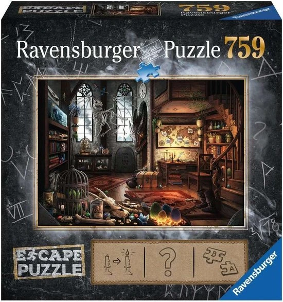 De mysterieuze illustratie dompelt puzzelaars en spelers onder in een mysterieuze wereld waar een “uitgang” te vinden is! Inhoud: een puzzel met 759 mysterieuze stukjes, een handleiding en een voorbeeld van de oplossing.