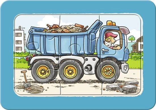 Graafmachachine, tractor en kiepauto. Puzzelplezier voor de allerkleinsten, met de afbeeldingen van een graafmachine,tractor en kiepwagen: -optimaal aantal stukjes om te beginnen ? Stevige, makkelijk hanteerbare stukken ?bevordert op een speelse manier concentratie en fijne motoriek