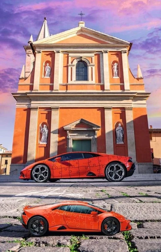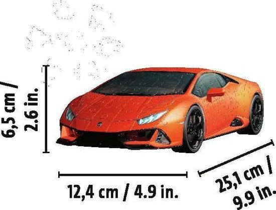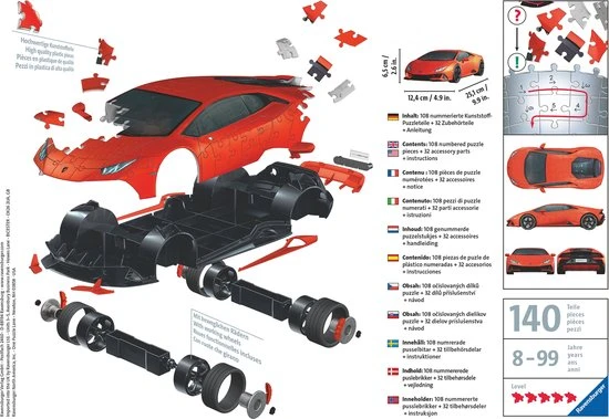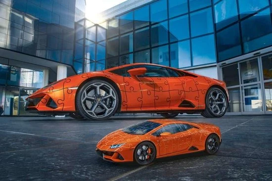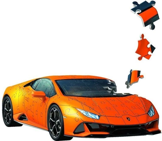 Met 108 stevige kunststof puzzelstukjes van Ravensburger ontstaat een Lamborghini Hurac?n EVO!