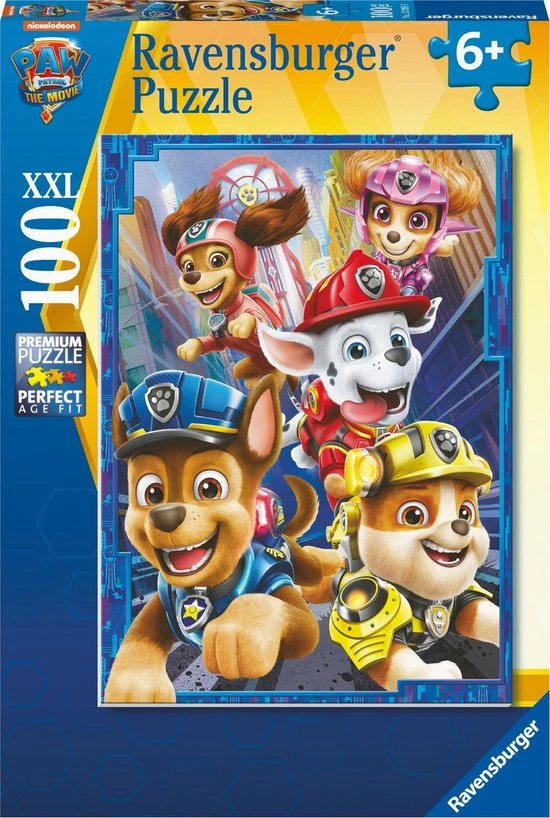Ontsnap uit de realiteit en stap in de wereld van Ravensburger puzzels. Tijdens het puzzelen ontdekken kinderen hun grootse vaardigheden. XXL- puzzels voor XXL- puzzelplezier. De XXL-grote puzzelstukken zijn eenvoudiger te leggen. Het resultaat is een kunstwerk op posterformaat dat in geen enkele kinderkamer misstaat. Dankzij de met de hand gemaakte stansmessen is de vormvariatie van de stukjes oneindig. Kinderen vanaf 6 jaar zullen genieten van de Paw Patrol the movie puzzel van 100 XXL stukjes.