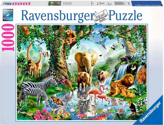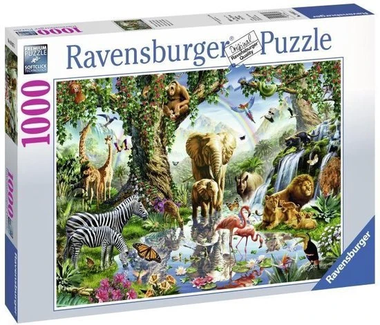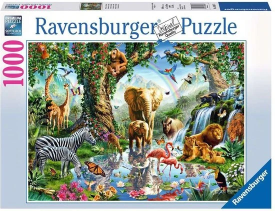 Ontsnap uit de realiteit en stap in de wereld van Ravensburger-puzzels. Deze Ravensburger puzzel van 1000 stukjes is geschikt voor zowel beginnende als ervaren puzzelaars. En omdat onze geliefde puzzels een standaard formaat hebben, kun je het resultaat inlijsten en ophangen. Dankzij de met de hand gemaakte stansmessen is de vormvariatie van de stukjes oneindig. Jong en oud zullen genieten van deze Avonturen in de jungle puzzel met 1000 stukjes.