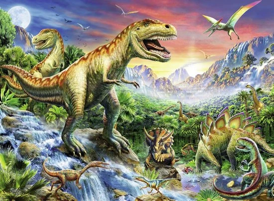 Ontsnap uit de realiteit en stap in de wereld van Ravensburger-puzzels. Tijdens het puzzelen ontdekken kinderen hun grootse vaardigheden. XXL-puzzels voor XXL-puzzelplezier. De XXL-grote puzzelstukken zijn eenvoudiger te leggen. Het resultaat is een kunstwerk op posterformaat dat in geen enkele kinderkamer misstaat. Dankzij de met de hand gemaakte stansmessen is de vormvariatie van de stukjes oneindig. Kinderen vanaf 6 jaar zullen genieten van de Bij de dinosaurussen puzzel met 100 stukjes met als thema Dinosaurussen.