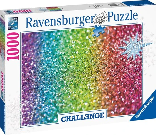 Ontsnap uit de realiteit en stap in de wereld van Ravensburger puzzels. Deze Ravensburger puzzel van 1000 stukjes is geschikt voor zowel beginnende als ervaren puzzelaars. En omdat onze geliefde puzzels een standaard formaat hebben, kun je het resultaat inlijsten en ophangen. Dankzij de met de hand gemaakte stansmessen is de vormvariatie van de stukjes oneindig. Jong en oud zullen genieten van deze Challenge Glitter puzzel met 1000 stukjes.