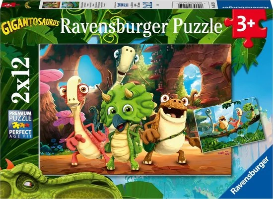 Ontsnap uit de realiteit en stap in de wereld van Ravensburger puzzels. Tijdens het puzzelen ontdekken kinderen hun grootse vaardigheden. Met 2 x 12 stukjes kun je twee prachtige puzzels maken! Dankzij de met de hand gemaakte stansmessen is de vormvariatie van de stukjes oneindig. Kinderen vanaf 3 jaar zullen genieten van de De kleine dinobende puzzels met 12 stukjes. Ravensburger puzzels met 12 stukjes met als thema Dinosaurussen.