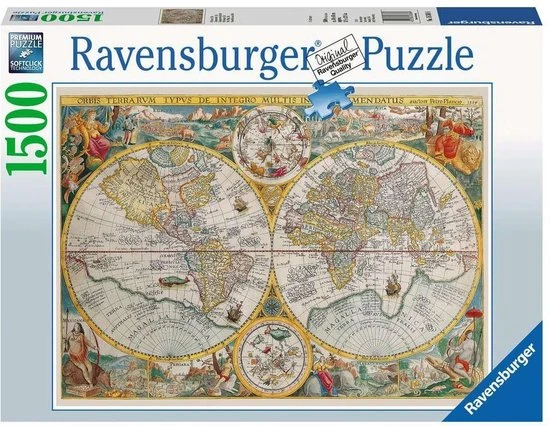 Ontsnap uit de realiteit en stap in de wereld van Ravensburger puzzels. Heb je al wat ervaring met puzzels van 1000 stukjes? Dan wordt het tijd voor een nieuwe uitdaging: onze puzzel van 1500 stukjes! Als je op zoek bent naar langer puzzelplezier, maar met een gemiddelde moeilijkheidsgraad, dan is dit de juiste puzzel voor jou. Dankzij de met de hand gemaakte stansmessen is de vormvariatie van de stukjes oneindig. Jong en oud zullen genieten van deze Wereldkaart 1594 puzzel met 1500 stukjes.