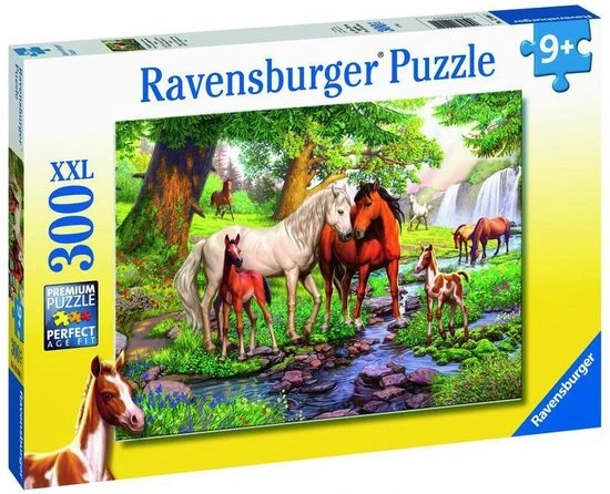 Ontsnap uit de realiteit en stap in de wereld van Ravensburger-puzzels. Tijdens het puzzelen ontdekken kinderen hun grootse vaardigheden. XXL-puzzels voor XXL-puzzelplezier. De XXL-grote puzzelstukken zijn eenvoudiger te leggen. Het resultaat is een kunstwerk op posterformaat dat in geen enkele kinderkamer misstaat. Dankzij de met de hand gemaakte stansmessen is de vormvariatie van de stukjes oneindig. Kinderen vanaf 9 jaar zullen genieten van de Wilde paarden bij de rivier puzzel met 300 stukjes.