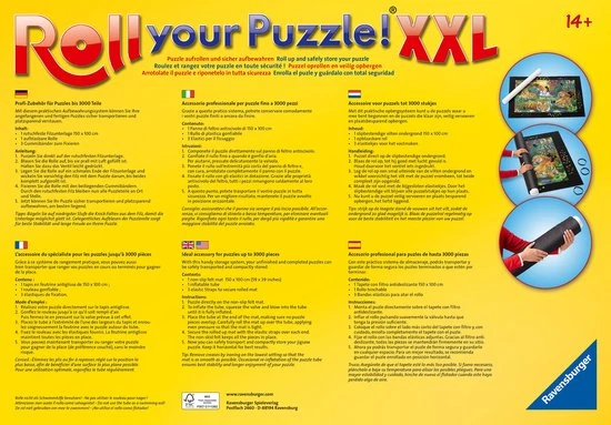 Met dit praktische opbergsysteem van Ravensburger kun je de puzzels waar je mee bent begonnen en de puzzels die klaar zijn, veilig vervoeren en plaatsbesparend opbergen. Deze puzzelmat is geschikt voor puzzels t/m 3000 stukjes en afmetingen zijn 150 x 100 cm.