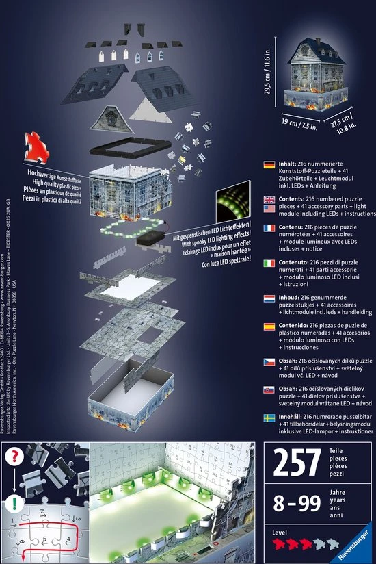 De perfecte 3D puzzel voor iedereen die van Halloween een feest maakt en van griezelen houdt. Talloze griezelige details nemen je mee in een heel bijzondere Halloween-wereld.