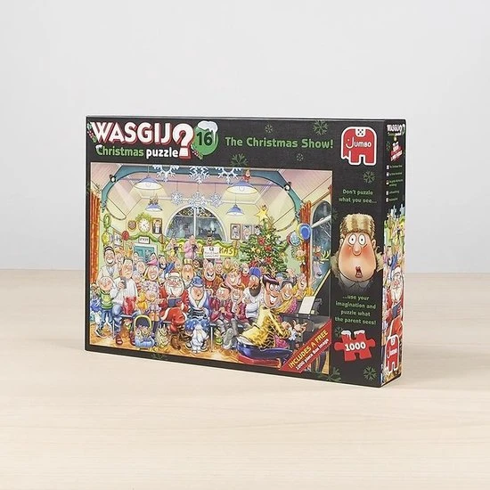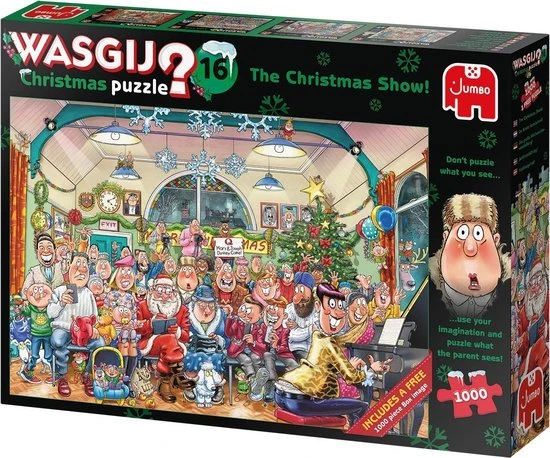 Deze Christmas Wasgij legpuzzel geeft de gezelligste en warmste tijd van het jaar weer! De kerstman is op bezoek bij De Grote Kerstshow! van het dorp. Samen met mensen over de hele wereld viert hij zijn feest! Deze groepsfoto straalt de gezelligheid De Grote Kerstshow! af. De Wasgij Christmas legpuzzel van Jumbo bevat 1000 stukjes. Hierdoor kun jij je fantasie goed gebruiken om de puzzel af te maken. De puzzel die je legt, is namelijk niet hetzelfde als de afbeelding op de doos. Wat zien de personages op deze foto? Middels een aantal hints ga jij aan de slag en puzzel je het toekomstbeeld van de puzzel. Tot het einde van de puzzel blijf je gissen. Daarom is deze puzzel een echte hersenkraker! De Jumbo Wasgij puzzel is gemaakt van karton en heeft een afmeting van 68 x 49 cm.